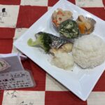 日替わりお楽しみランチ鯖の塩焼きオクラのゴマ和え蓮根の甘辛炒めさつま揚げの煮物ご飯