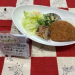 日替わりお楽しみランチかぼちゃコロッケ小松菜の煮浸しきんぴらごぼうご飯