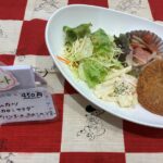 日替わりお楽しみランチハムカツウインナーときのこのソテーマカロニサラダご飯