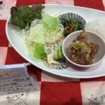 日替わりお楽しみランチ油淋鶏チキンのクリーム煮ほうれん草のピーナッツ和えご飯